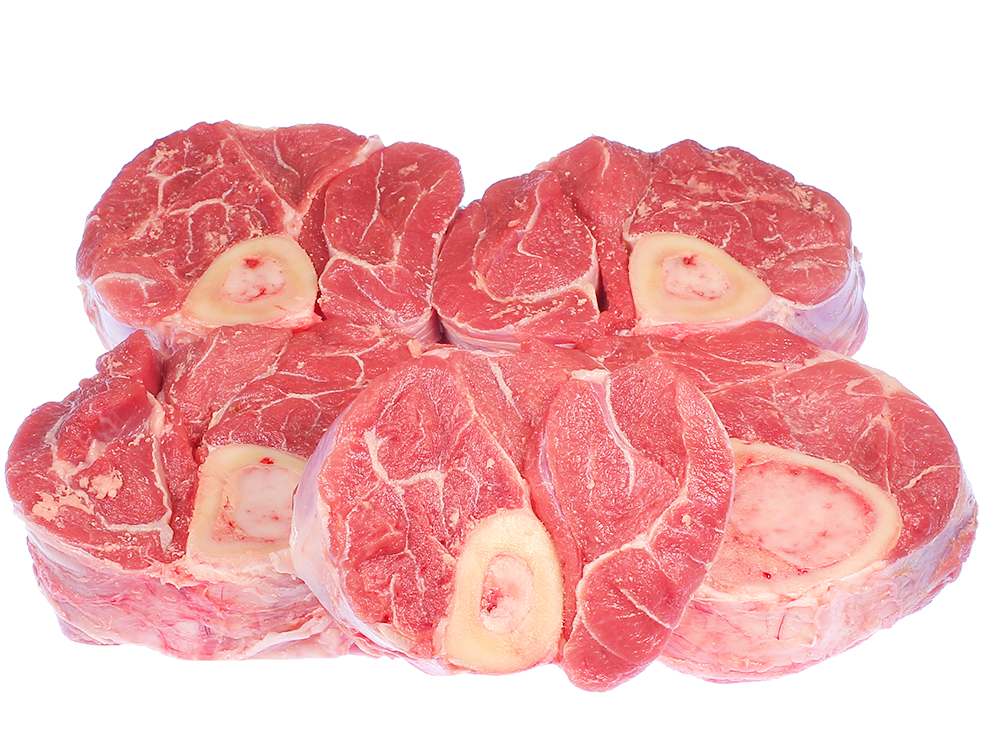 Magere Kalbshaxe in Scheiben gesägt - für leckere Osso Buco Gerichte.