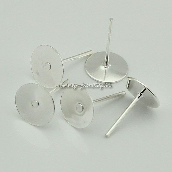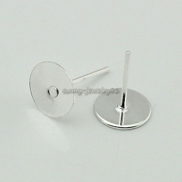 Wholesale 200pcs Silver Plated Flat Round Pad Post Stud Earring Findings 4mm,6mm,8mm,10mm |