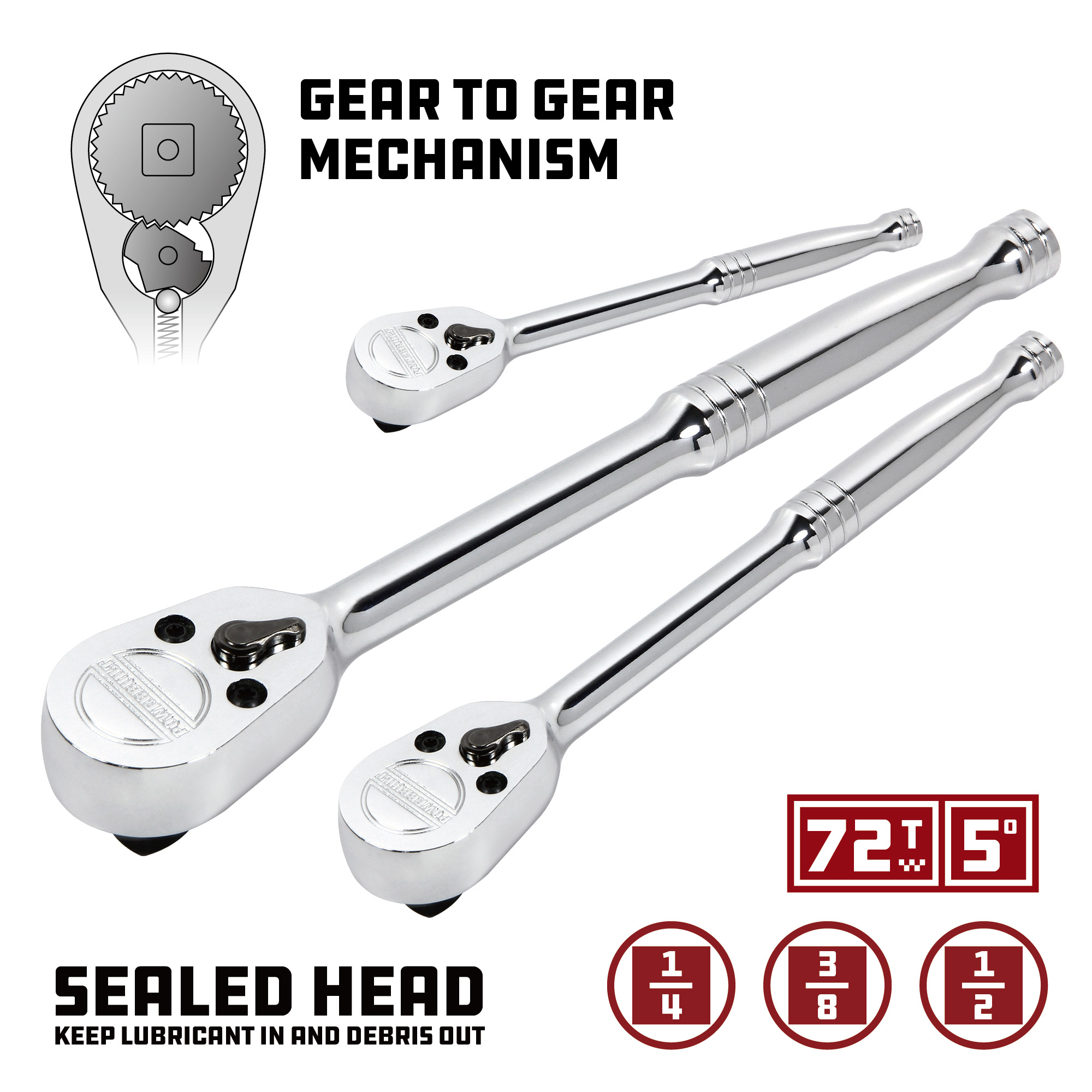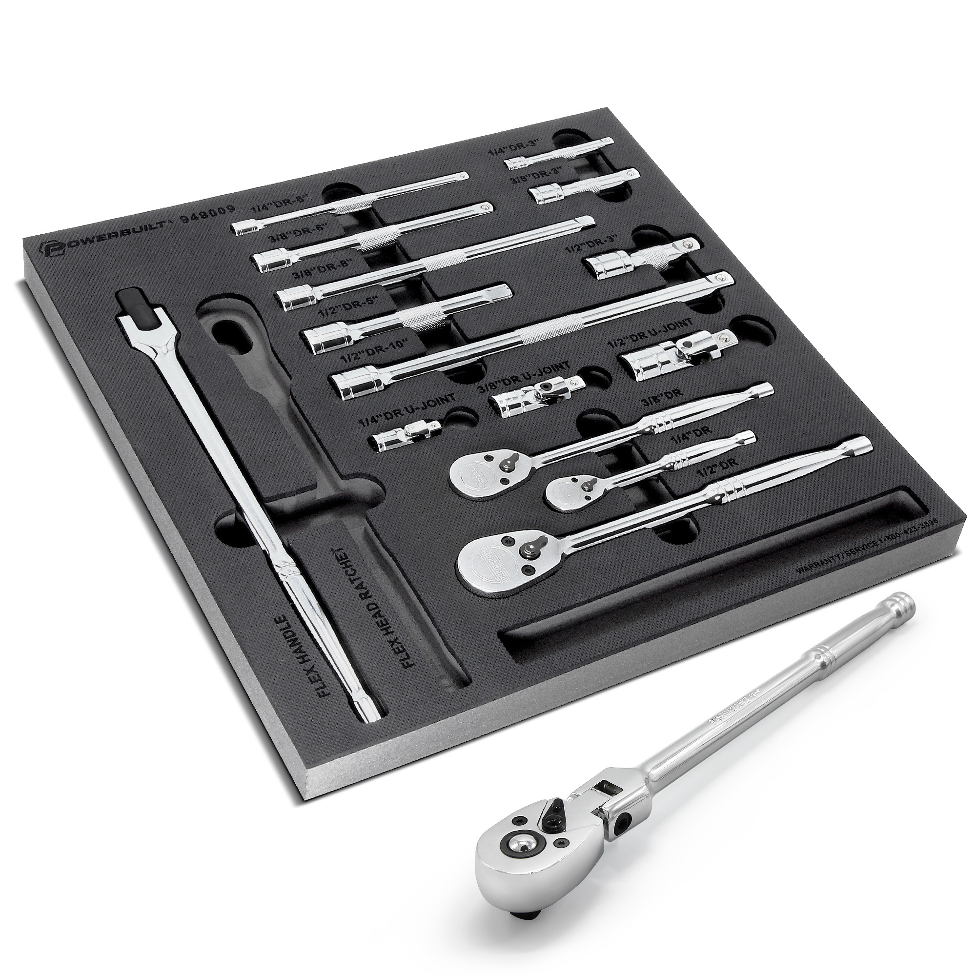 Powerbuilt Professional Technician ratchets and socket accessories are built to meet or exceed ANSI specifications. All ratchets are constructed of high-quality Chrome Vanadium (CR-V) steel with mirror polished chrome plated finish. Powerful, precise and stylish, Powerbuilt ratchets and socket accessories offer the look, feel and performance hard-working Techs deserve. A no questions asked replacement policy and lifetime warranty ensure it'll be a long-term relationship.