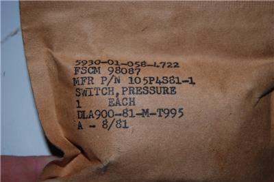 This Listing Is For A NEW ITT NEO-DYN Pressure Switch 105P4S81-1 18 PSI Acutation 7500 PSI Proof NEW