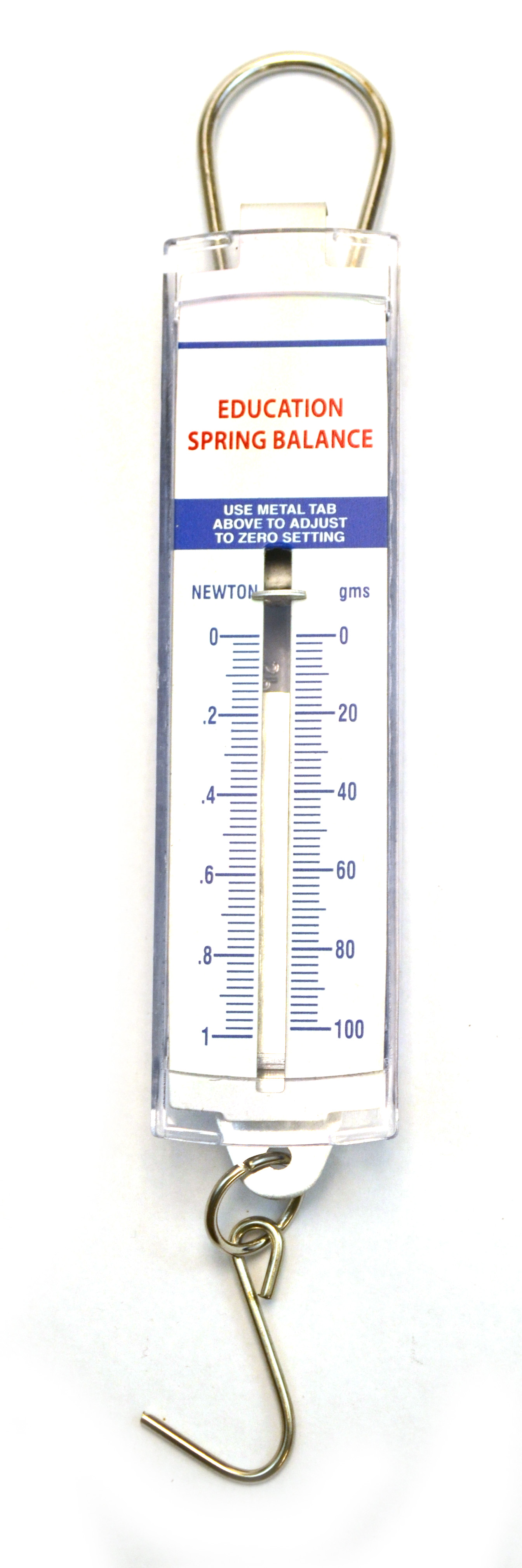 Superior quality & finish, dual transparent scale - measures in newtons and grams. User friendly zero-point calibration capability- simply pull up or push down the tab at the top of the scale to adjust. Features a loop at the top of the scale for hanging and a hook at the base to hold items being measured. Great for physics classrooms, demonstrations and experiments.