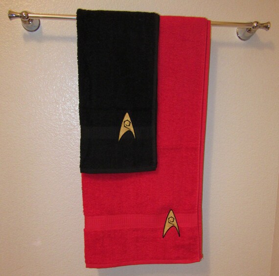 Includes a Black Hand Towel and a Red Bath towel with Engineering insignia embroidered on them.
