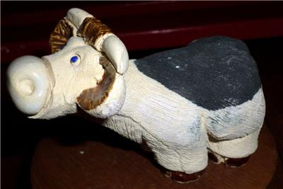 DescriptionUp for your consideration is this vintage Artesania Torreon Cow or Bull Figurine which was Hand Made in Uruguay. Handsome Little Fellow stands approximately 2 1/2 inches high and is about 4 inches long. Very Nice Vintage Condition with no noticeable flaws. I am not finding a signature on the bottom but am pretty certain this is from Artesania Torreon. Might make a nice addition to your collections. Make him yours! Note I will be listing more of these wonderful Torreon figures over the next few days. Always willing to combine shipping to save you on postage. Check them out.