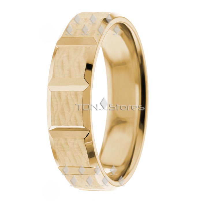This solid 14K gold wedding band ring is 6mm wide and comfort fit which makes the band easier to get on and off. 14K Yellow Gold Mens Womens unique wedding band ring is Matte - Shiny finish. Manufactured in New York, USA. Available in different metals, widths, colors and finishings.
