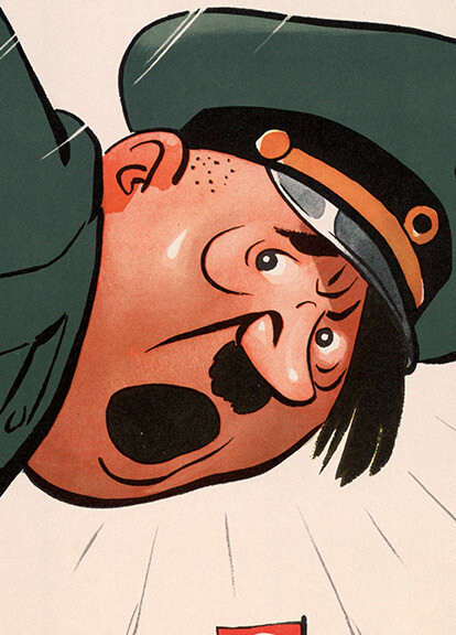 the home front. It shows Hitler playing with toy soldiers and being targeted