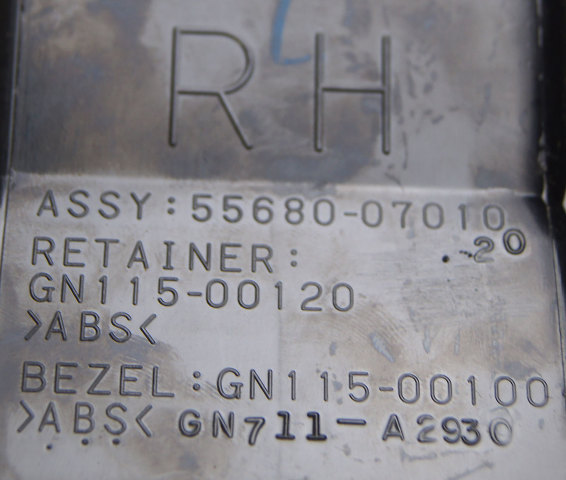 Click Thumbnails to EnlargeThis is the dashboard air vent for the right side of the dashboard in 2008-2010 Toyota Avalon vehicles. This item mounts on the dash on the far right side. This part is a grey colored plastic part that Toyota calls Light Grey. Replace your old or broken air vent with this brand new factory original part from Toyota at a fraction of the dealer price.
