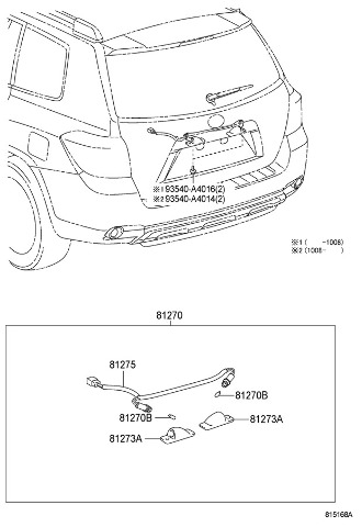 Click Thumbnails to EnlargeThis is the rear license plate lamps with the wire harness for 2008-2013 Toyota Highlander and 1999-2003 Lexus RX300 vehicles. This item mounts on the rear of the vehicle above the license plate. This is two lamp housings, two bulbs, and the wiring harness for them. Replace your old part with this brand new factory original part from Toyota or Lexus at a fraction of the dealer price.