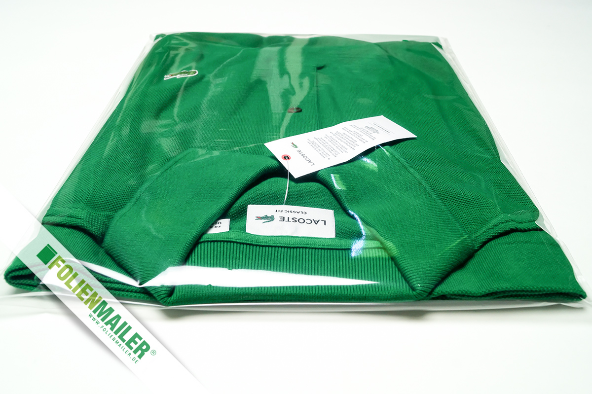 Unsere transparenten Polybags aus hochtransparenter und kristallklarer CPP Folie oder weicher und transparenter LDPE Folie (je nach Auswahl oben) sind mit einem wiederverschließbarem Selbstklebeverschluß ausgestattet und erfüllen die Anforderungen des modernen Versandhandels.