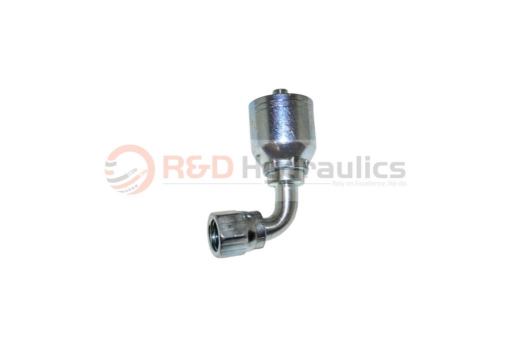 You will receive one 10-pk each of brand new from factory 1/4” Female JIC 90° x 1/4” (#4) hose, gold or natural colored plated steel hydraulic crimp fitting. These fittings are compatible with Parker Karrykrimp, also Gates, Dayco, and Aeroquip adjustable machines, they are not compatible with Weatherhead non-adjustable crimpers. These fitting are a “Bite to Wire” hydraulic crimp fittings.