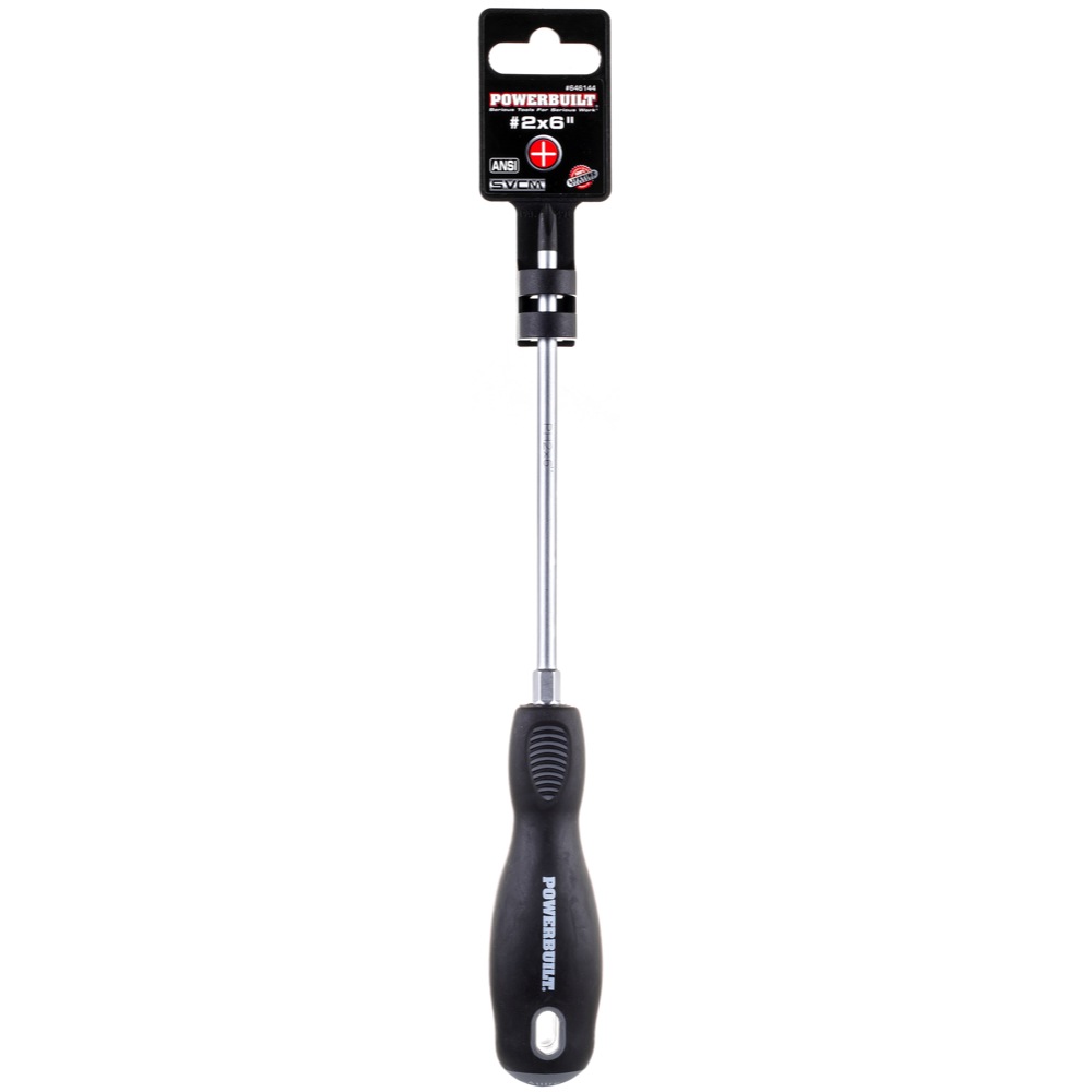 This line of Powerbuilt screwdrivers feature drivers that are built with premium double-injection Trilobular handles for maximum comfort and grip. Shafts are constructed of (SVCM) Silicon Vanadium Chrome Magnesium alloy Steel for added durability and torque. Large size drivers have hex bolsters, and sizes are marked on the handle caps for easy size identification. All drivers exceed ANSI specifications for quality and performance.