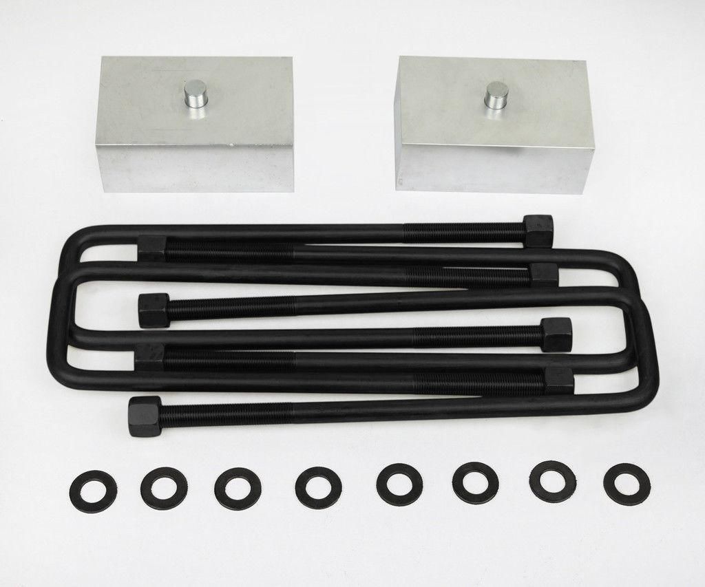 Installs between axles and leaf spring, no modifications are required to install. Factory shocks can be reused.