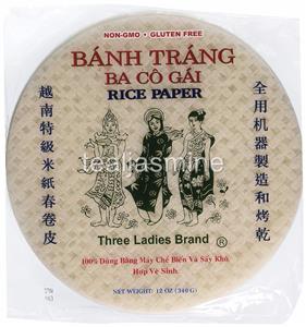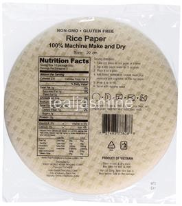 Thin rice paper for making Vietnamese Spring Rolls. They are thin and semi-translucent. All natural no preservatives. Non-GMO and Gluten Free.