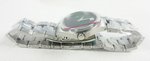 dot markers. A comfortable stainless steel bracelet completes this