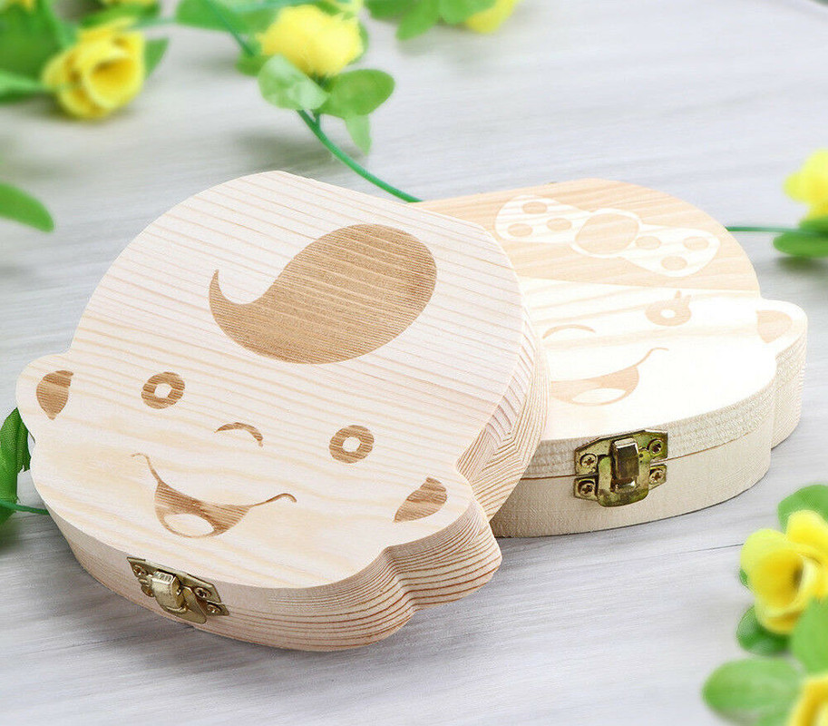 Storage Small Kids Childs New Baby Tooth Keepsake Wooden                                      Box Boy Girl Save Teeth
