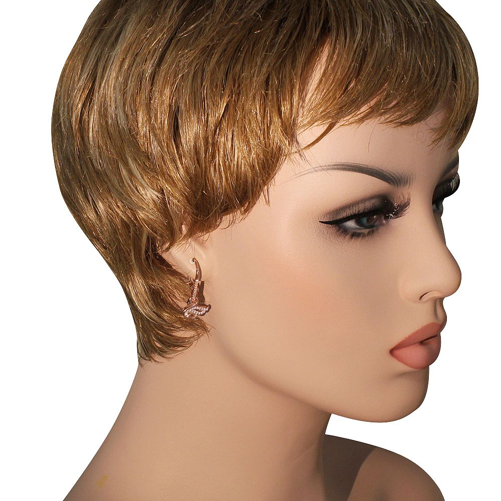 Feature 1: | ANIMAL DESIGN, rose gold tone swan bird drop dangle earrings with sparkling stone accents |