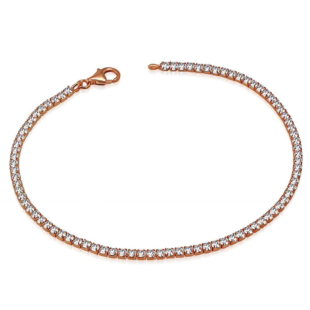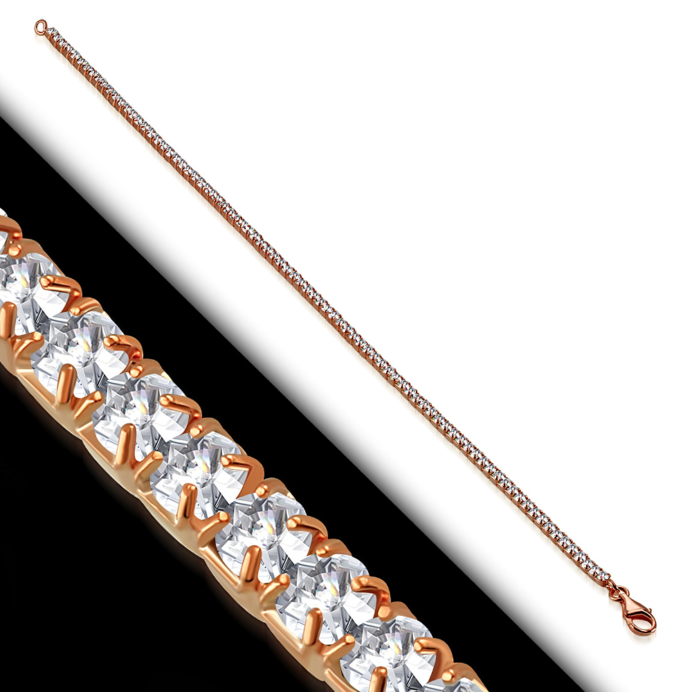 Feature 1: | TENNIS DESIGN, rose tone white clear round classic tennis bracelet |