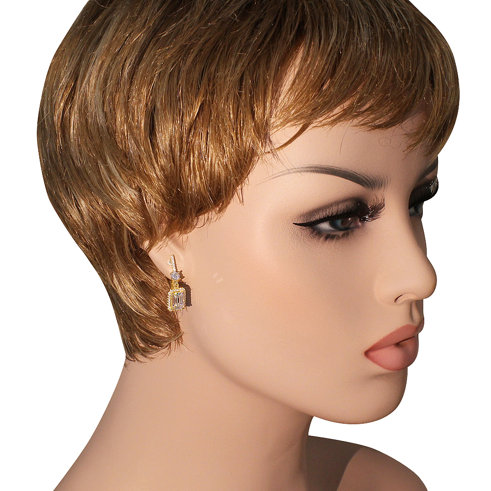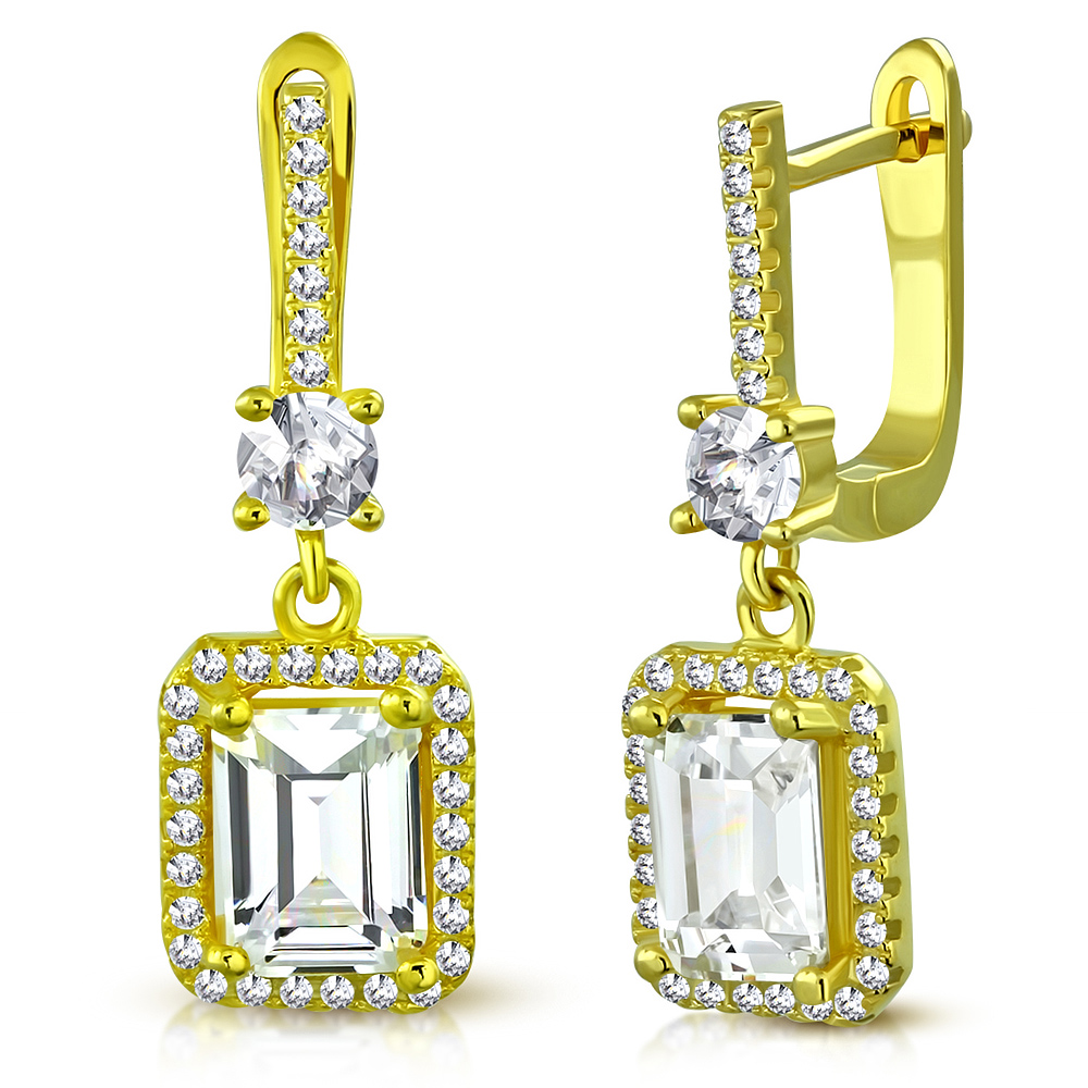 Feature 1: | ELEGANT DESIGN, yellow gold tone rectangular round drop dangle earrings with sparkling stone face |