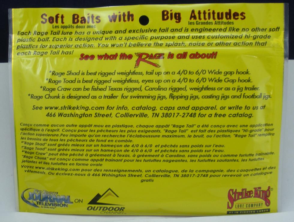 - Each Rage Tail lure has a unique and exclusive tail design and is engineered like no other soft plastic bait