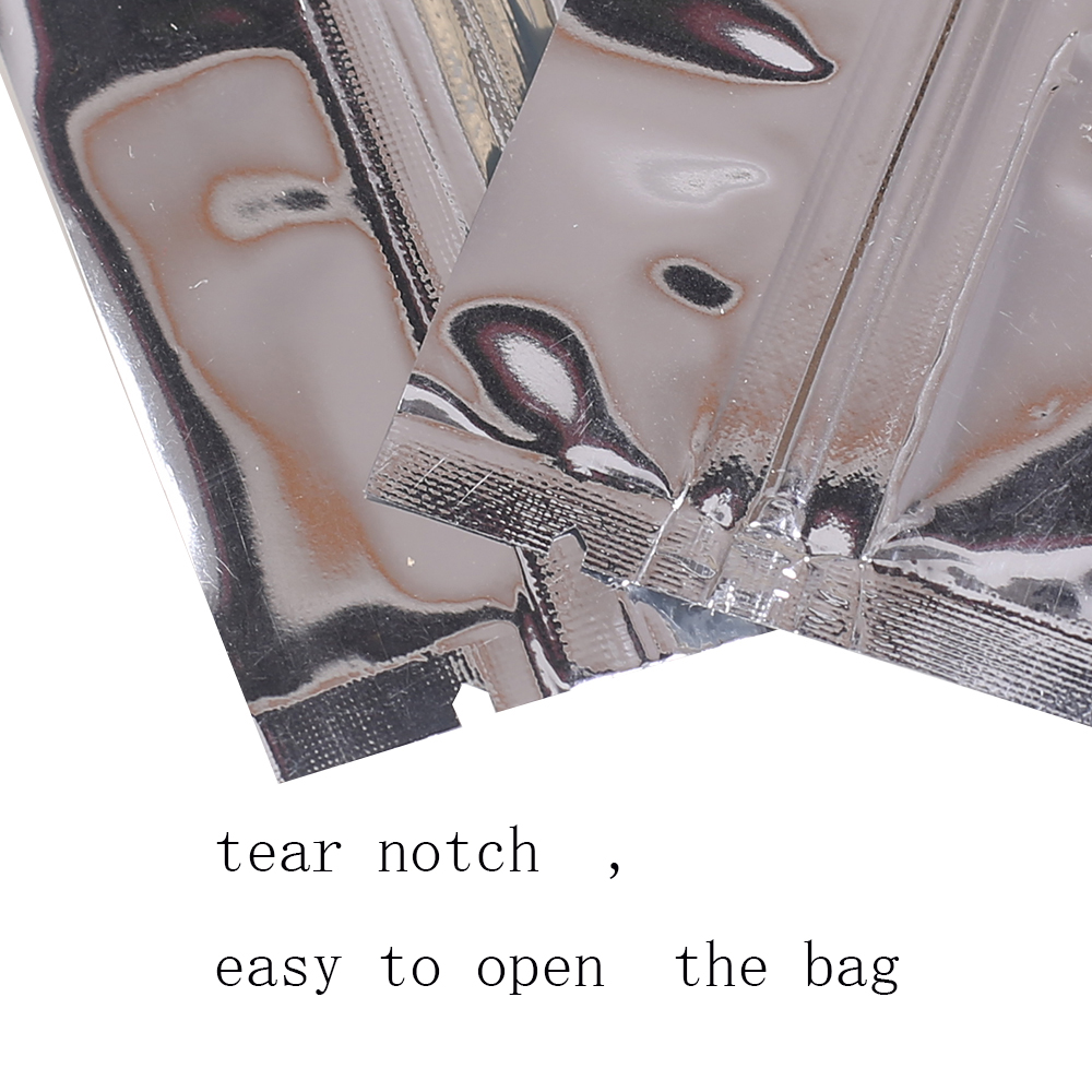 Zip Lock Bags are great for storage and packaging of your products and favorite items. Contents can be anything from jewelry to non-perishable foods. The bags protect the contents from UV damage, debris, and more! For extended storage, you can heat seal the bag! The tear notches enable access even after heat sealing. The mylar material provides a lightweight, durable and flexible packing solution!