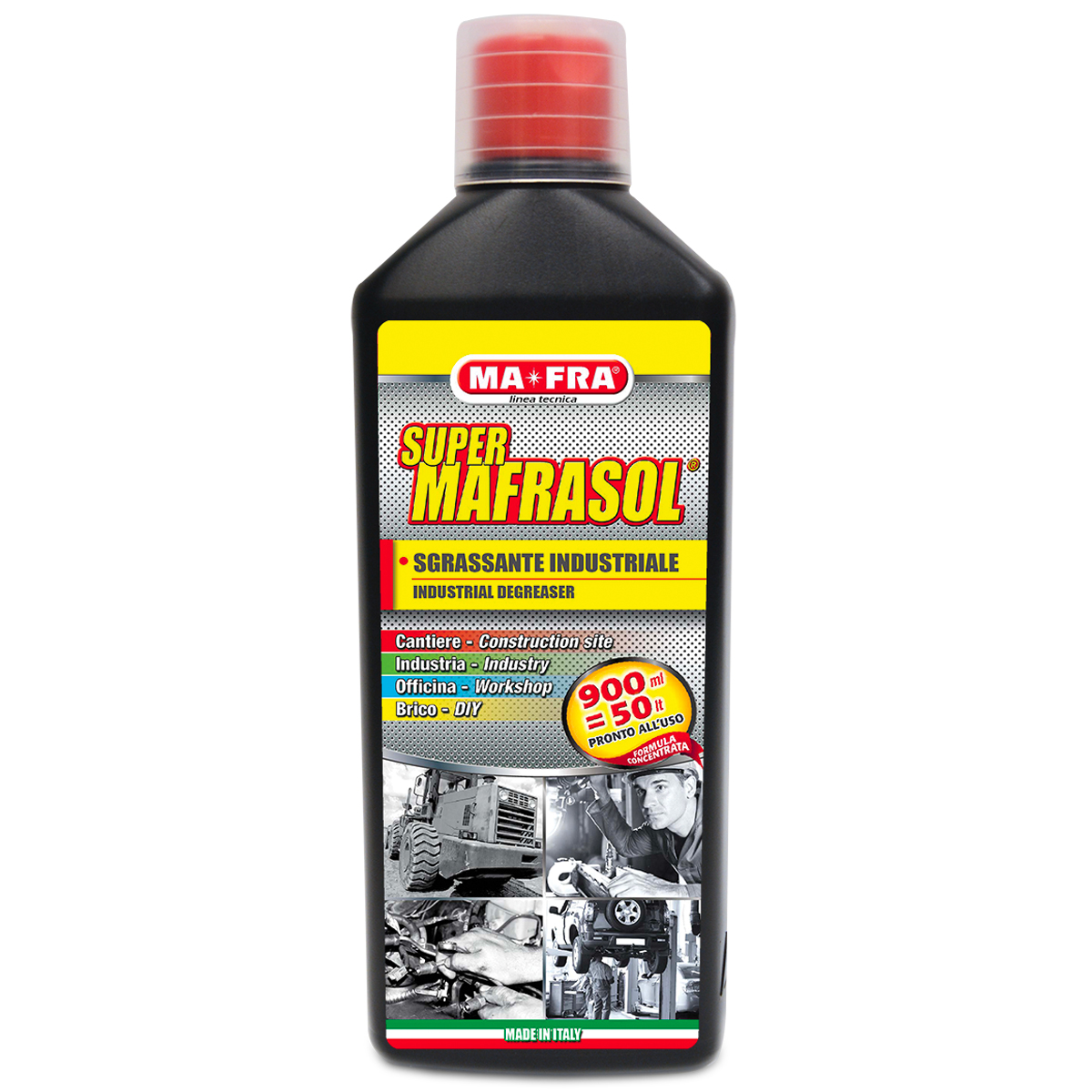 SUPERMAFRASOL è uno sgrassante industriale leader per le sue caratteristiche di detergenza intensiva che si ottengono anche a diluizioni estreme: un prodotto polivalente che trova vaste applicazioni in numerosi settori: officine, industrie, carpenterie, trasporti, cantieri riuscendo ad eliminare perfino dalle porosità lo sporco più tenace, incrostato e carbonioso.
