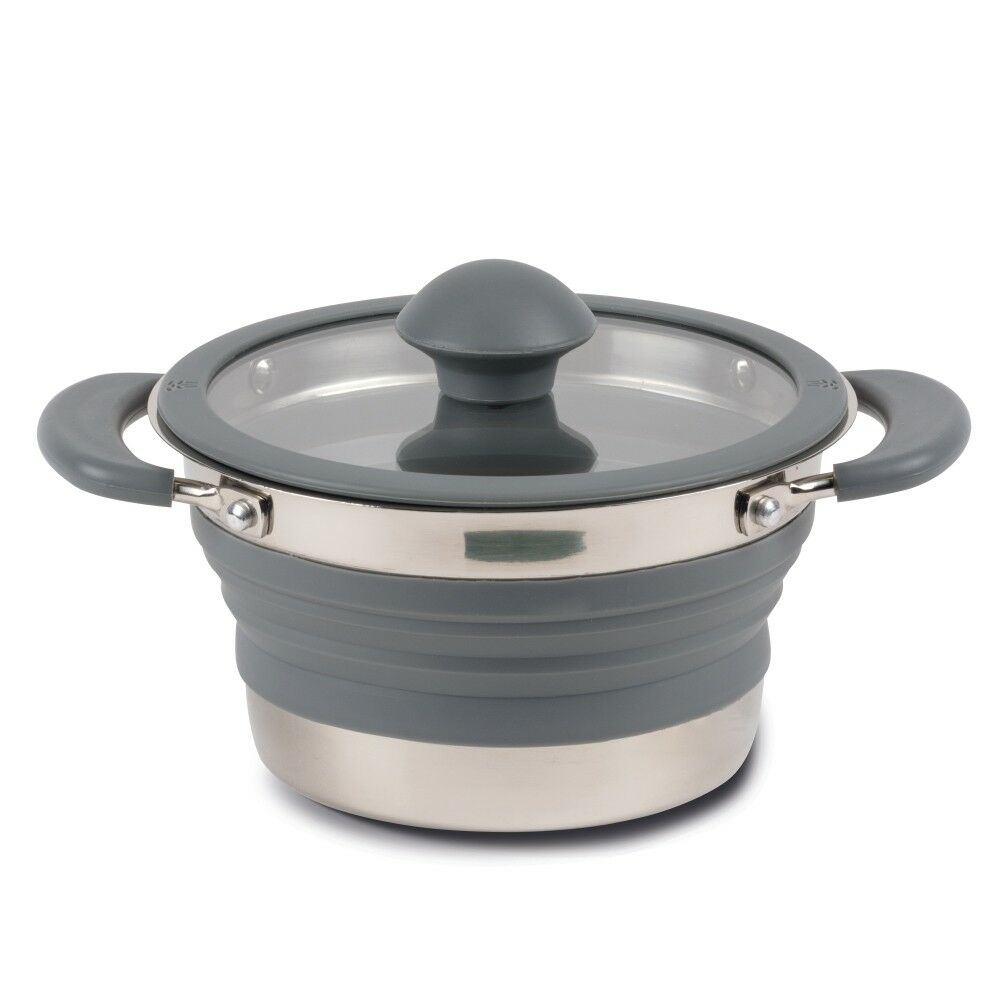 Kampa Folding Collapsible Silicone & Stainless Steel Saucepan - 1 Litre - Grey