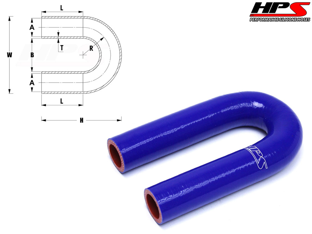 HPS High Temp 4-ply Reinforced Silicone 180 Degree U Bend Elbow Coupler Hose meet and exceed SAEJ20 industry standards, ideal for heavy duty pressure connections and provides excellent resistance for high temperature applications. HPS performance silicone 180 Degree U Bend Elbow Coupler Hose is designed and engineerd to meet high performance requirements specified in various industry standards, therefore make it great for marine and industrial use, custom turbo or intercooler piping fabrication, DIY intake or radiator cooling system.
