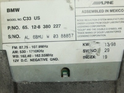 BMW 320i 1993-1995 cass, "Alpine" (CD ready w/weatherband)