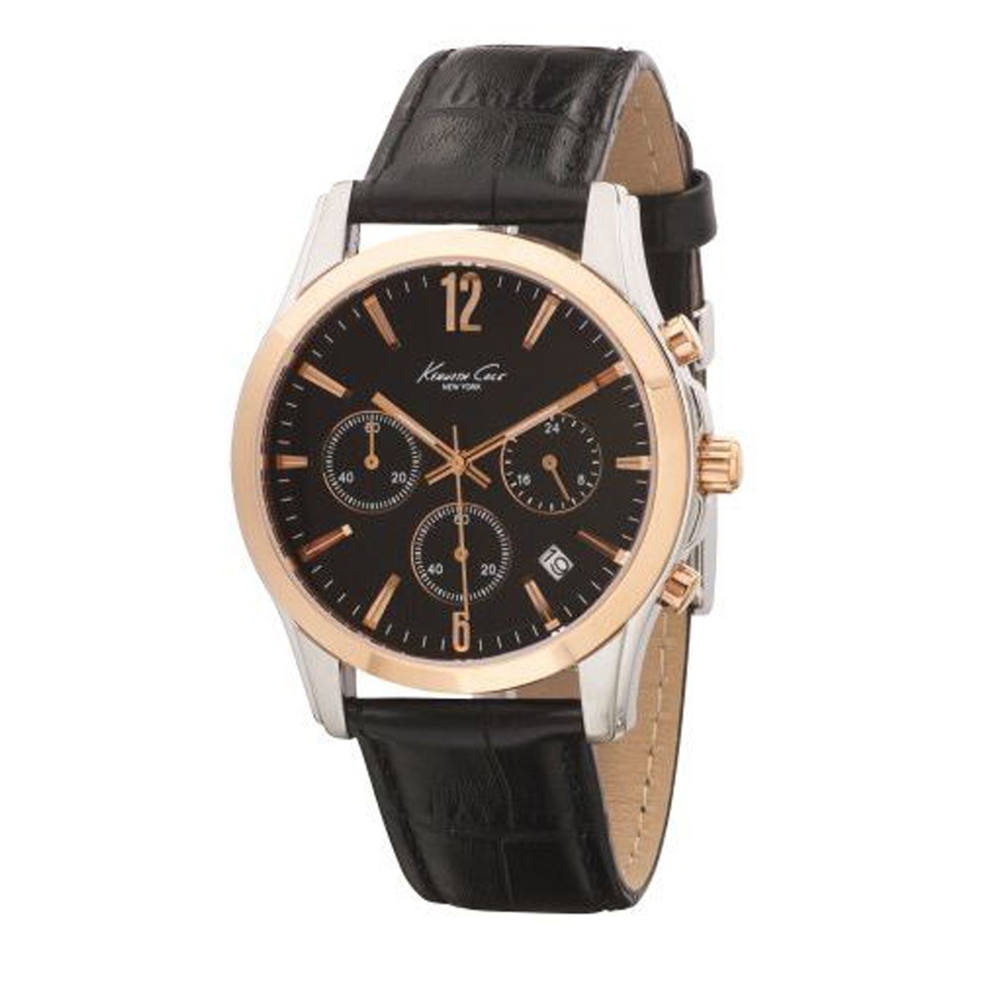 Kenneth Cole Mens Black Rose Gold Silver Analogue Watch Date KC1502 UK Warranty