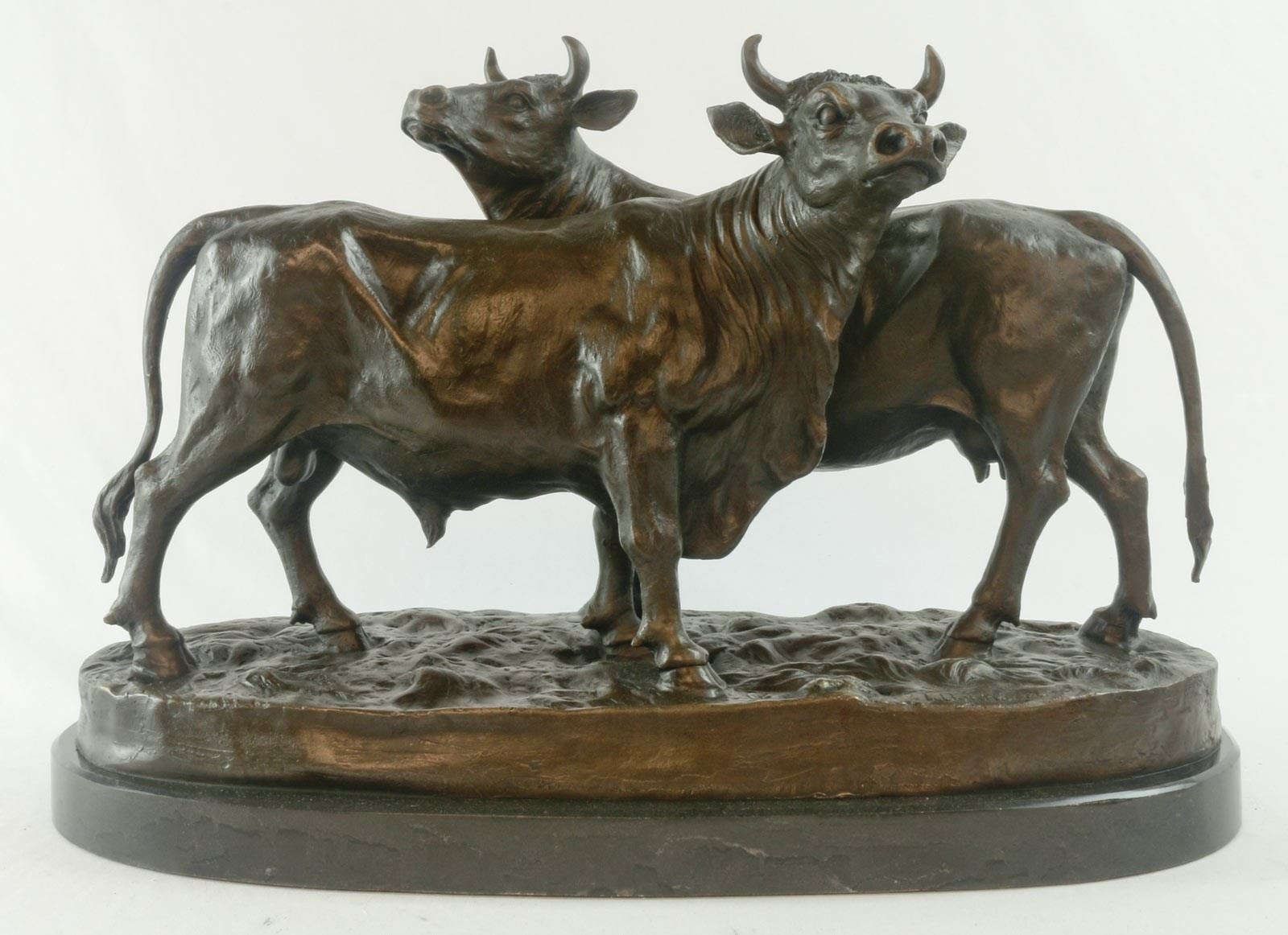 Bronze "Paddock" Cow and Bull Sculpture on a Marble Base