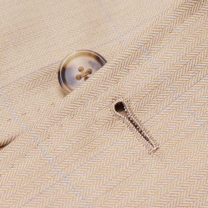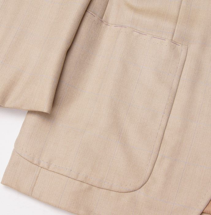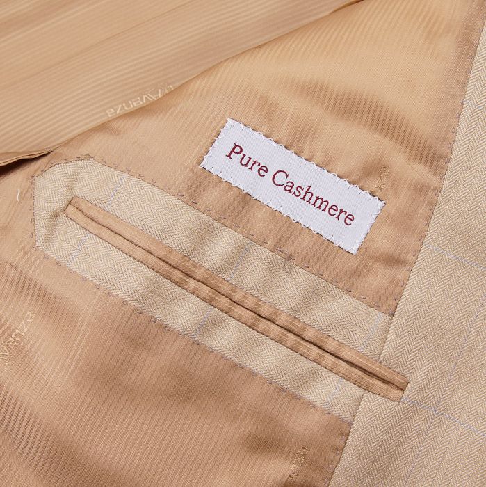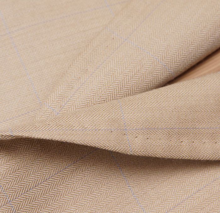Beige herringbone cashmere base with blue windowpane check.