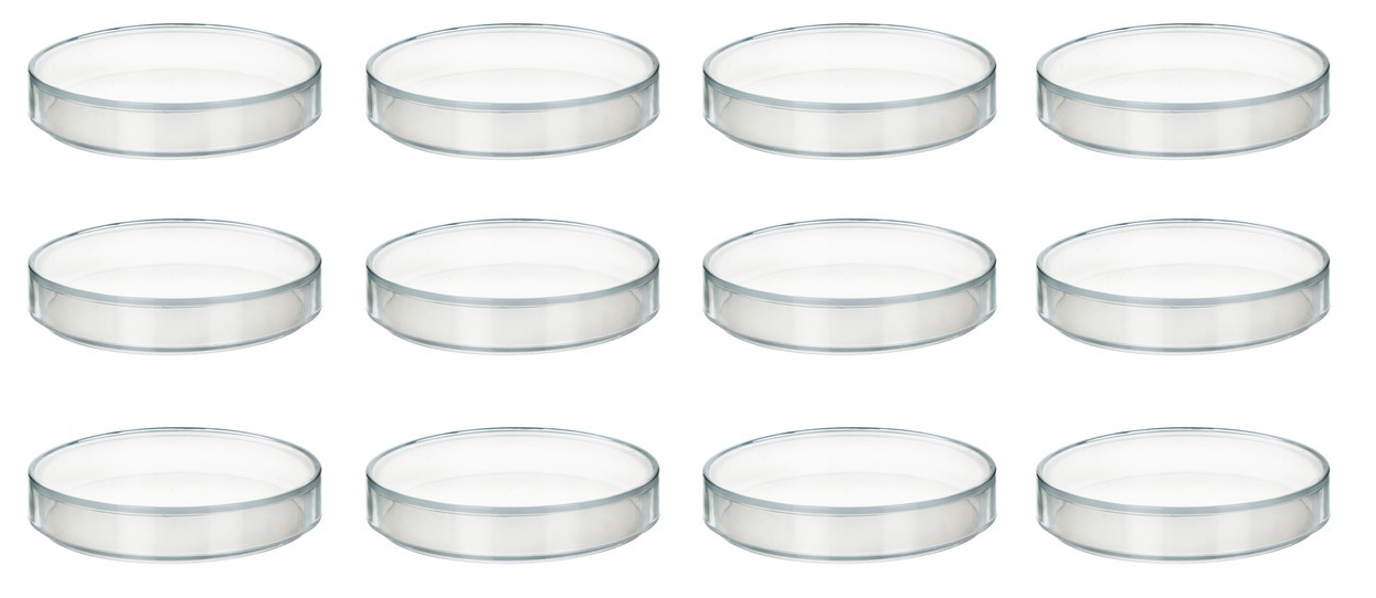 Pack of 12 petri dishes with lids made of high quality, translucent polypropylene plastic. Each dish measures 3.75" (95mm) in diameter and 0.5" (13mm) deep. Lids measure 3.9" (100mm) in diameter. Unbreakable, non-toxic, non-sterile, multifunctional and ready to use. Excellent for general laboratory applications, including cell culturing, plant germination, precipitate drying and solvent evaporation, home or classroom science experiments, crafting, small storage solutions and more.