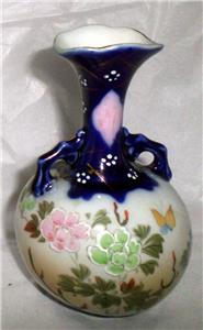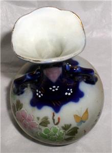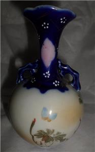 Up for your consideration is this vintage, possibly older, 5 1/2 inch tall blue and white porcelain vase featuring hand painted flowers and butterflies. This charming old piece of porcelain is in good vintage condition with no chips, cracks or chiggers but does show normal signs of age and wear. (please enlarge pics) I find no marks which might indicate a maker on this fine old piece of porcelain. Handsome piece may make a nice addition to your collections! Make it yours! Thank you for shopping with us! Questions or comments feel free to ask. - Carol
