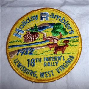 Up for your consideration is this vintage HRRVC Holiday Ramblers 1982 18th International Rally in Lewisburgh, West Virginia Patch. Patch is approximately 4 inches round. I do not believe this patch has ever been used and is in good vintage condition. Low buy it now price includes free shipping in the USA. Might make a nice addition to your collections. Make it yours! Thank you for shopping with us! Questions or comments feel free to ask. - Carol