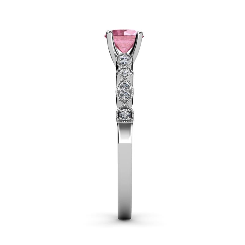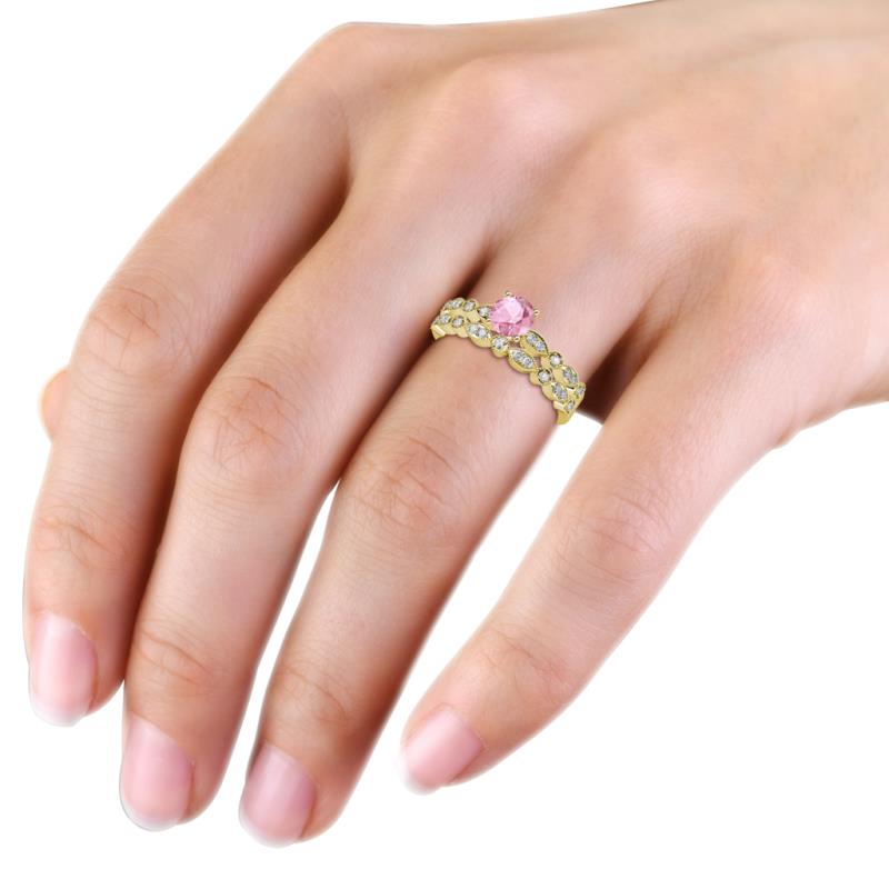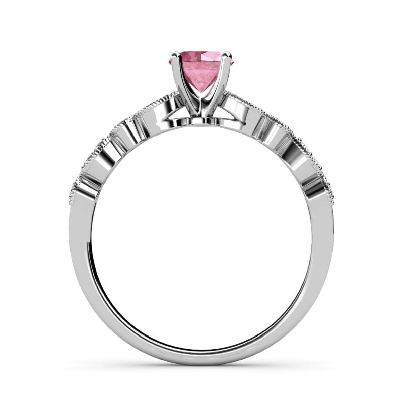 Pink Tourmaline and Diamond (SI2-I1-Clarity, G-H-Color) Marquise and Dot Engagement Ring & Wedding Band Set 1.20 ct tw in 14K Gold.