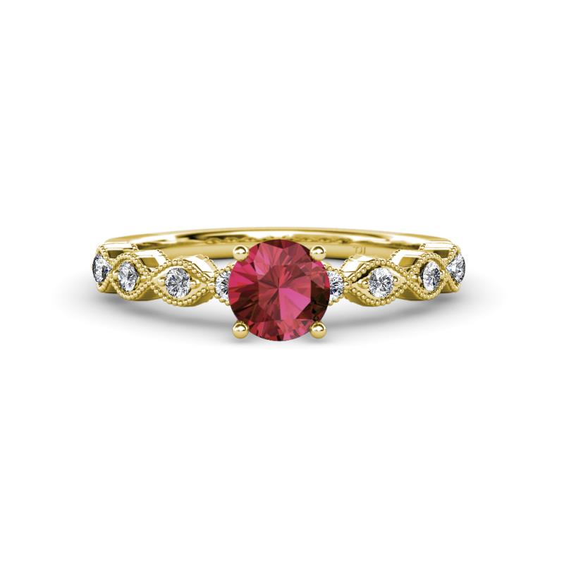 Rhodolite Garnet and Diamond (SI2-I1-Clarity, G-H-Color) Marquise Shape Engagement Ring & Wedding Band Set 1.15 ct tw in 14K Gold.