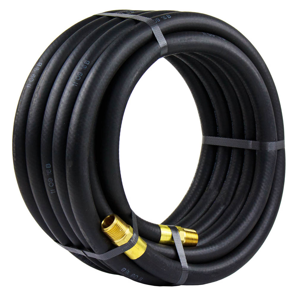 This is a 25' hose with a 1/2" inside diameter and machined brass 1/2" Male NPT threaded ends on each side. Machined brass end connectors never corrode and seal better against leaking than aluminum, steel, or zinc.