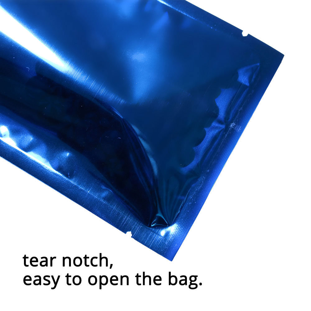Open Top Bags are great for storage and packaging of your products and favorite items. Contents can be anything from jewelry to non-perishable foods. The bags protect the contents from UV damage, debris, and more! For storage, you heat seal the bag with a heat sealer or impulse sealer! The tear notches enable access after sealing. The mylar material provides a lightweight, durable and flexible packing solution!