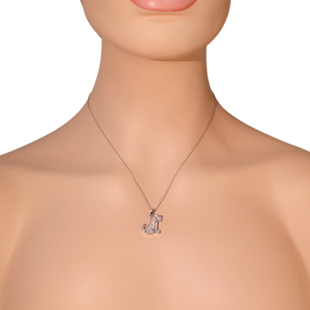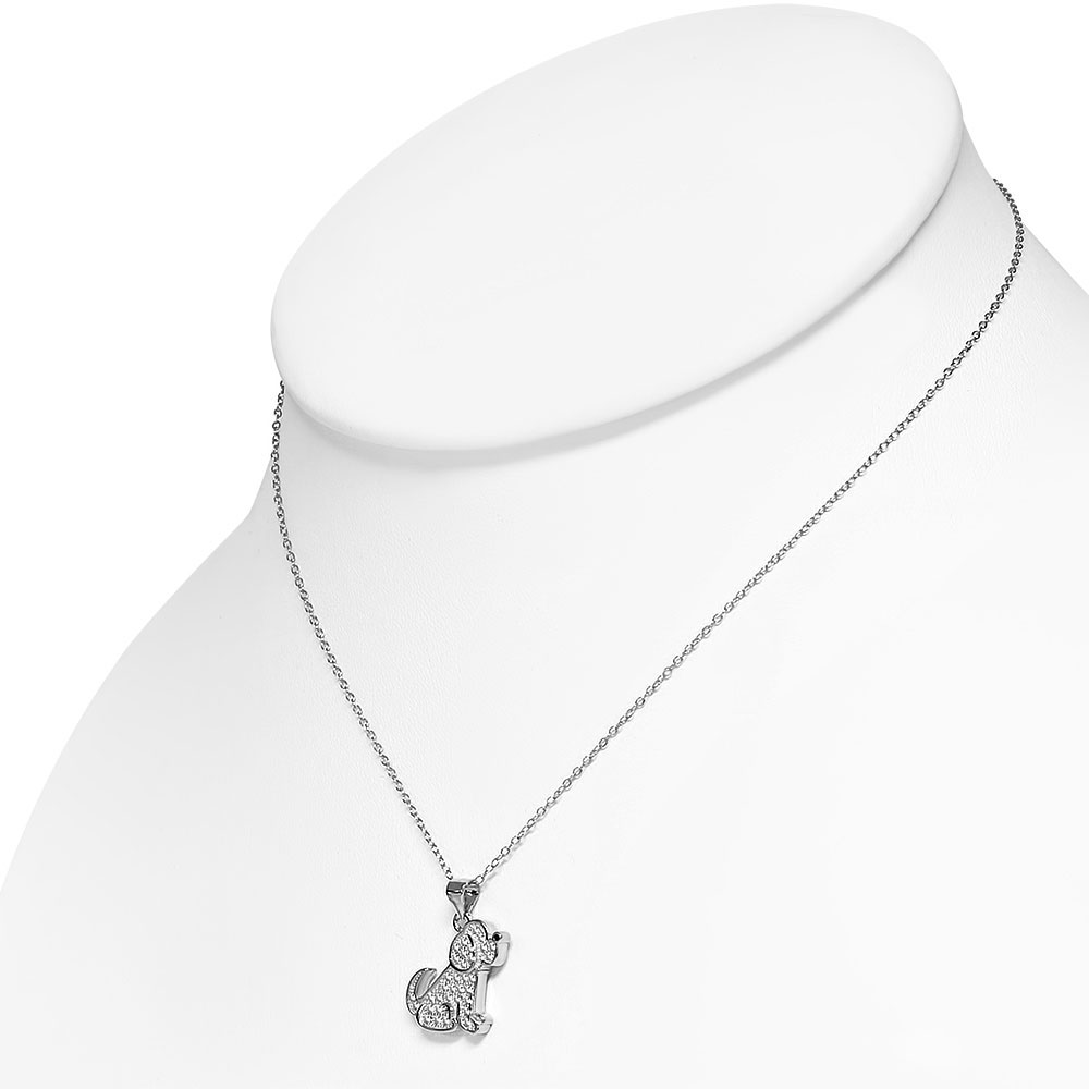 Feature 1: | CUTE LOOK, adorable silver tone puppy dog animal pendant necklace with sparkling stone design |