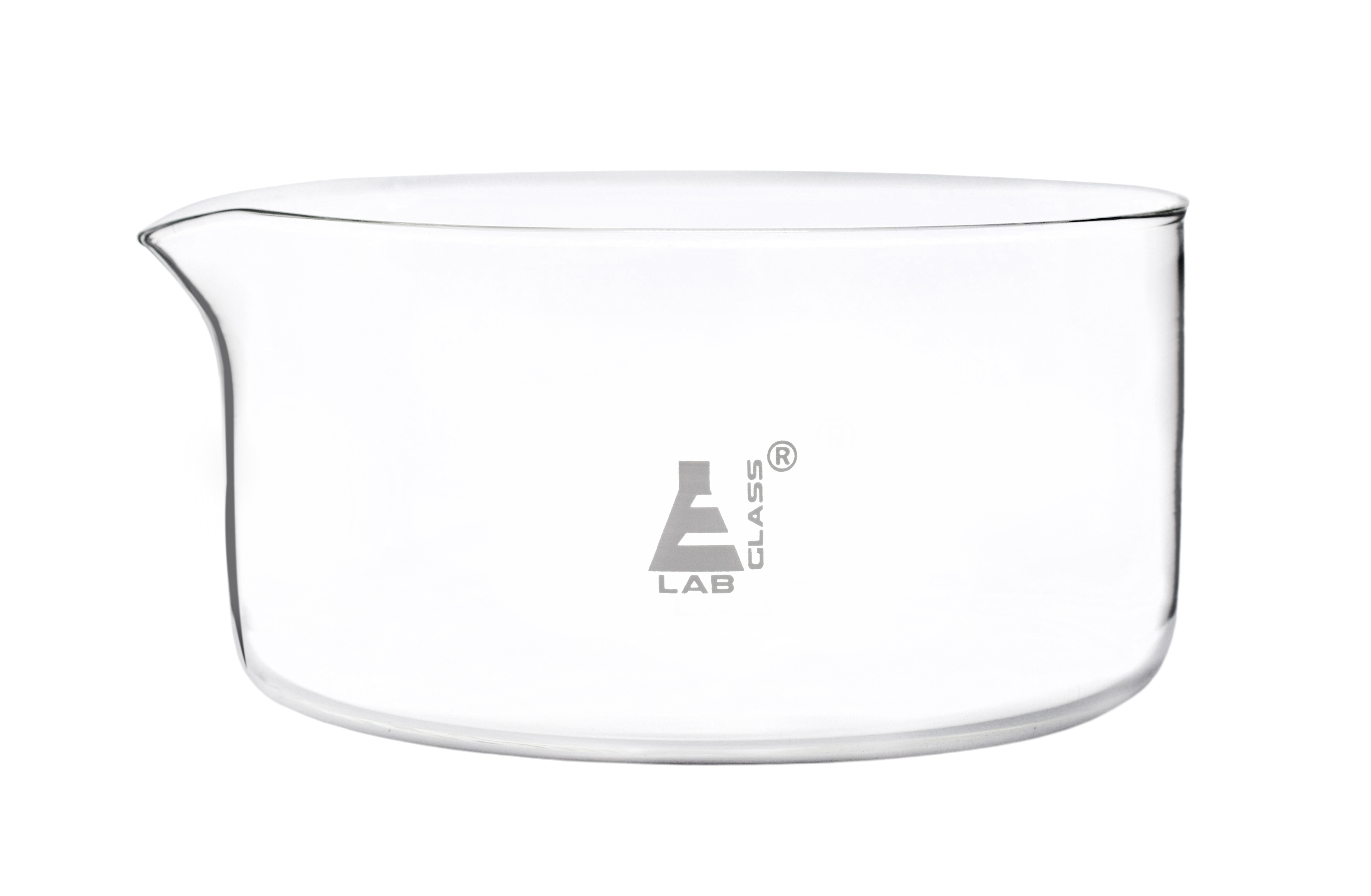 2000ml capacity crystalizing dish made of high quality, heavy duty Borosilicate 3.3 glass. Features flat base, and beaded rim. Spout for easy pouring.