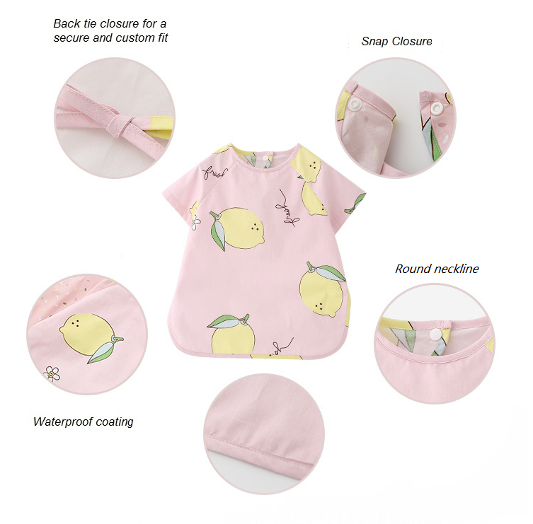 Generously sized, comfortable and durable, the short Sleeved Bib is great at containing spills and reducing laundry.