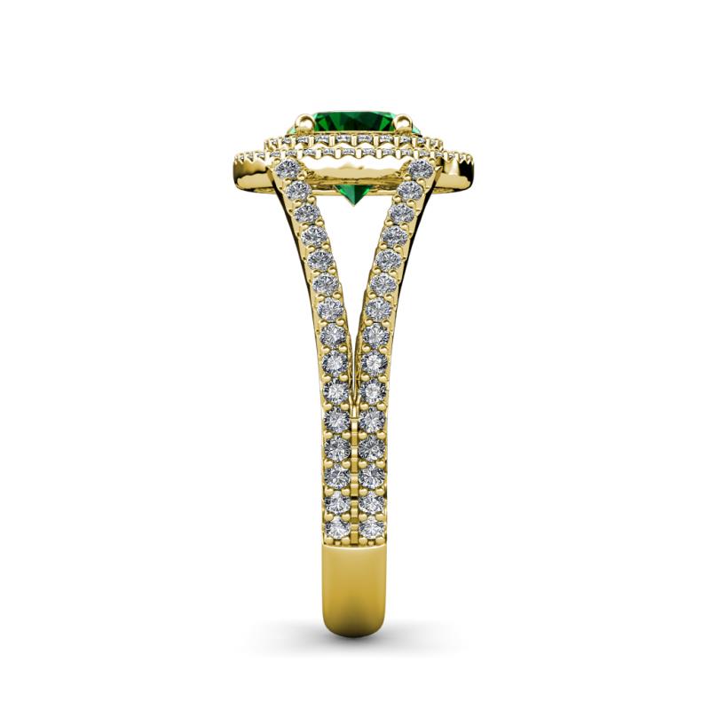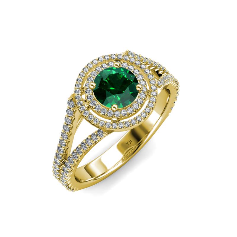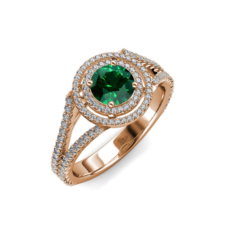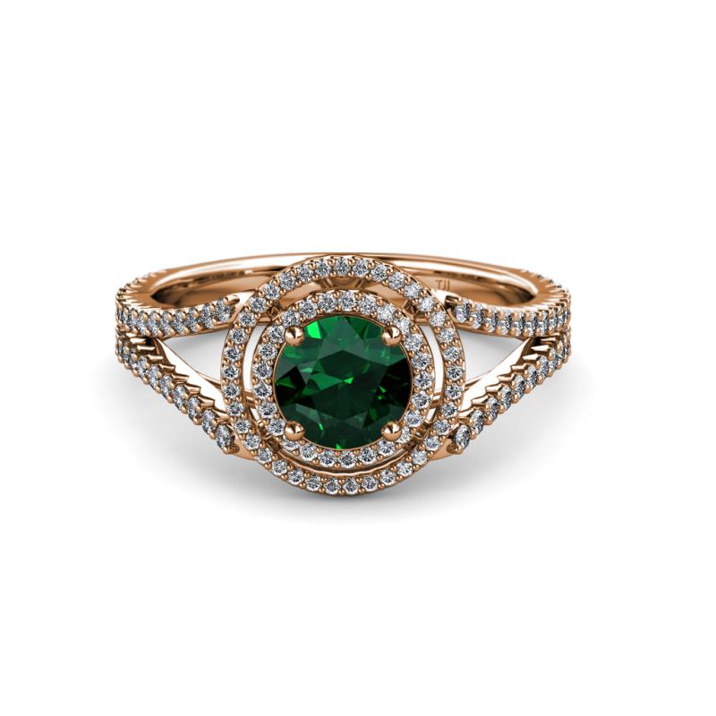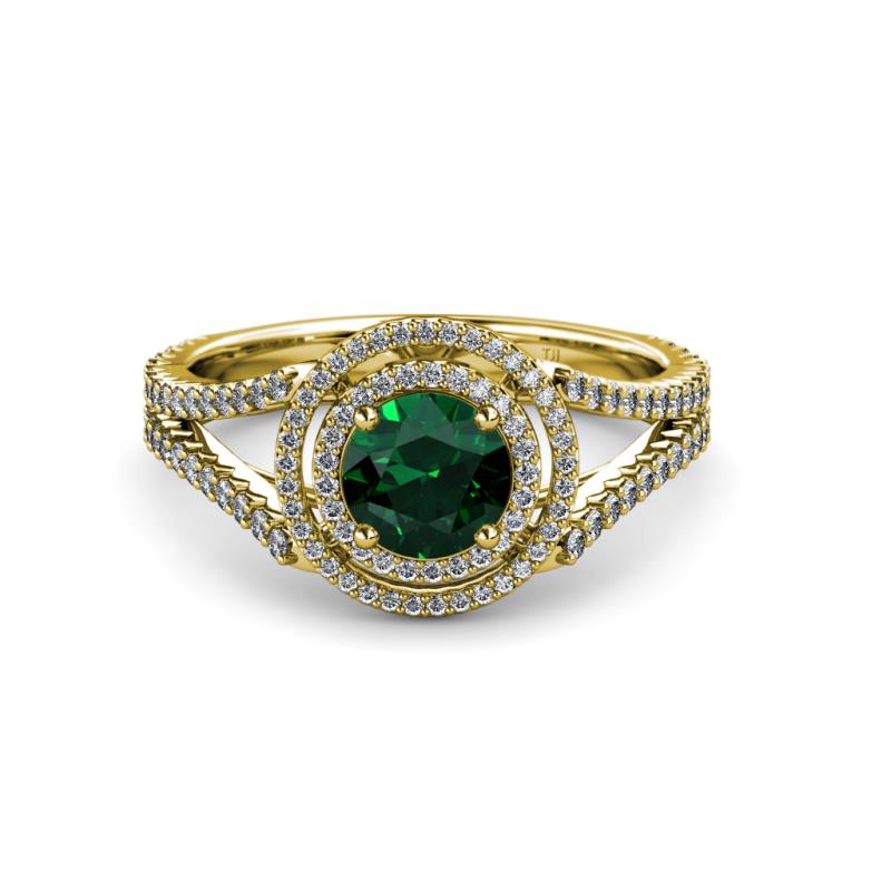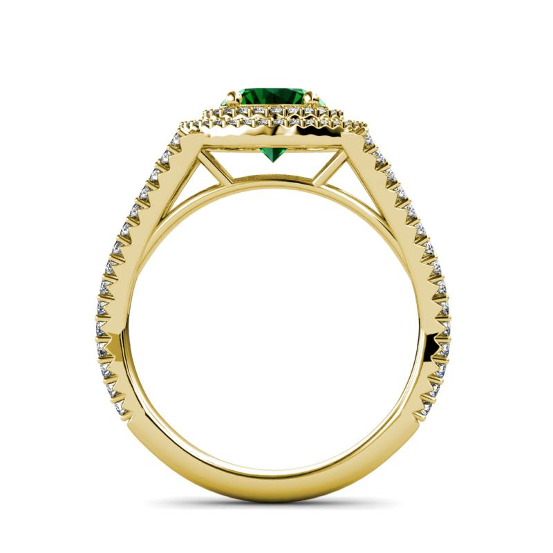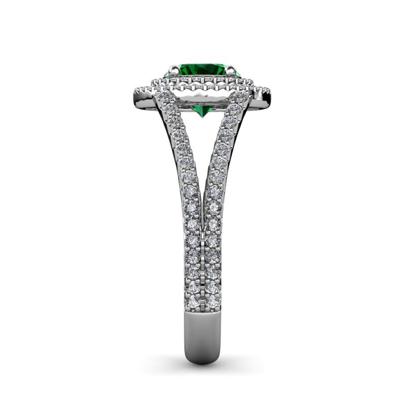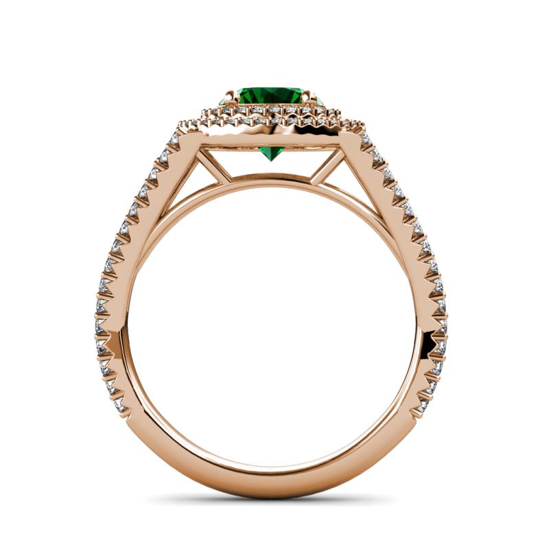 Elle Emerald and Diamond Double Halo Engagement Ring