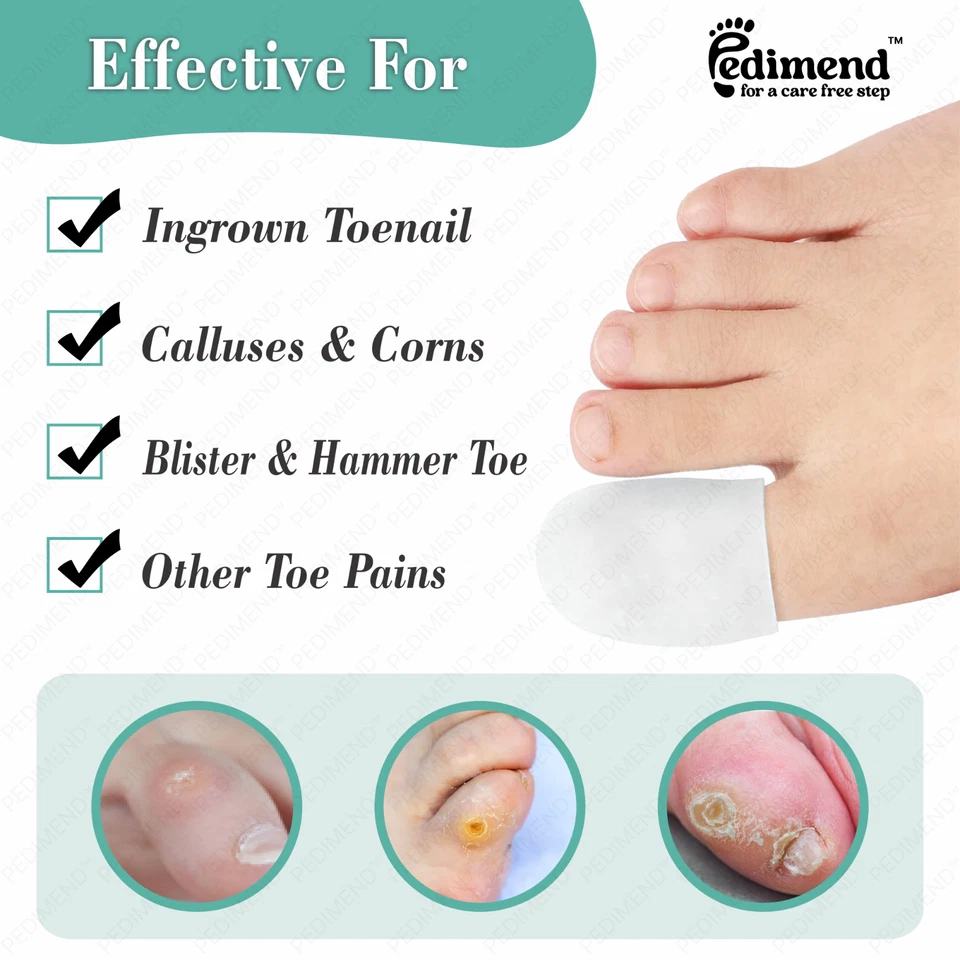 Product FeaturesPedimend™ Toe Caps are made of Medical grade silicone gel. These Toe Sleeves are Hypoallergenic, Soft & Comfortable, can be extensible, easily stretch and slip on, washable and reusable. Can easily be worn under socks and shoes without feeling bulky. Non-slip material means they stay on even while you're active. PROVIDES INSTANT RELIEF Pedimend™ Silicone Toe Protectors provide cushioning and protect Sore Bunions, Blisters, Rubbing, Toenail Loss and Irritation from Pressure and Rubbing. No Need For Complicated Bandages. PREVENT PAINFUL RUBBING Pedimend™ Toe Caps can protect yourself from calluses, blisters and irritation which caused by walking or light activity. HOW IT HELPS YOU Pedimend™ Toe Protectors surround and cushion the toe, It Protects you from corns, sore and irritation caused by walking or light activity. The protectors are made from high-grade soft silicon which will stretch to fit any size toe. SIMPLE TO USE Pedimend™ Gel Toe Covers can use Both Men and Women, You Could Wear Them with Shoes (High-Heels, Hiking Shoes, Sports Shoes and Walking Shoes) Even while Working and it is OK to Wear While Sleeping. SILICONE TOE CAPS FUNCTION ✓ Silicone toe caps are soft and comfortable, can effectively relieve the friction between the toes, reduce stress and pain. ✓ Designed to prevent, reduce and eliminate the damage to the toes or toenails, to make your toes more comfortable. ✓ Effectively reduce and eliminate the pain caused by cocoon skin, blisters, etc. ✓ Auxiliary tools for the treatment of toe lateral. ✓ The good partner for the football player. SWIFT PAIN RELIEF A straight toe is a happy toe! Sadly, Bunions cause the big toe to tilt inward, causing undue strain at the base of the toe. By straightening it, you'll get fast symptomatic relief. So, separate your big toe and second toe to help maintain proper alignment, prevent friction, and relieve pressure on bunions. PACKAGE INCLUDES ✓ 1PAIR (2PCS) of Silicone Gel Big Toe Cap Protector WHY PURCHASE FROM PEDIMEND? Why purchase from PEDIMEND™ , When others Look the same , FOR LESS?