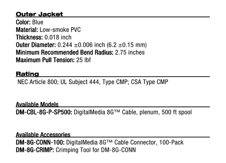 Crestron Cable PN: DM-CBL-8G-P Digital Media-Cable-8G-Plenum 150 to 450 ' / ft / foot / feet Lengths |