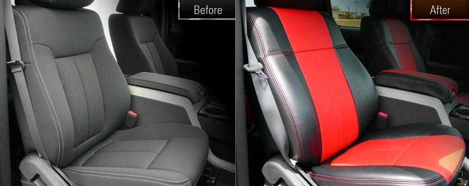 Installation of a full set of seat covers will only take a few hours and it doesn't require any special tools. It's a simple job for one person, although a second set of hands to tug and wiggle the fabric and leather over your old seats will help. These carefully-crafted seat cover will fit perfectly and most people will not be able to tell they weren't factory installed. The set includes center console, armrest and headrest covers, if appropiate.