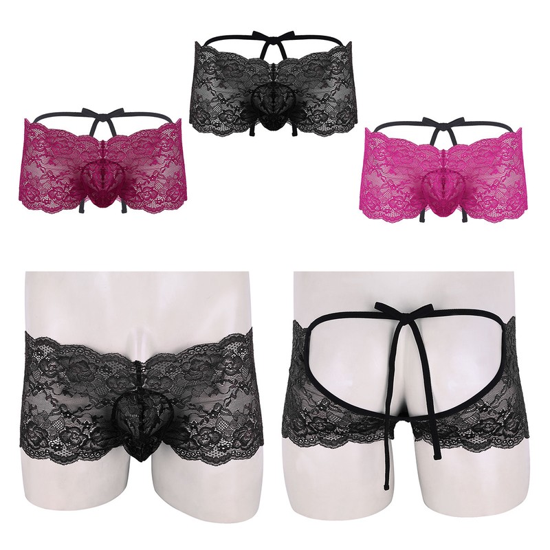 Sexy Men Sissy Lace Lingerie Open Butt Low Waist Briefs Bikini Panties UnderwearGBP 1.15