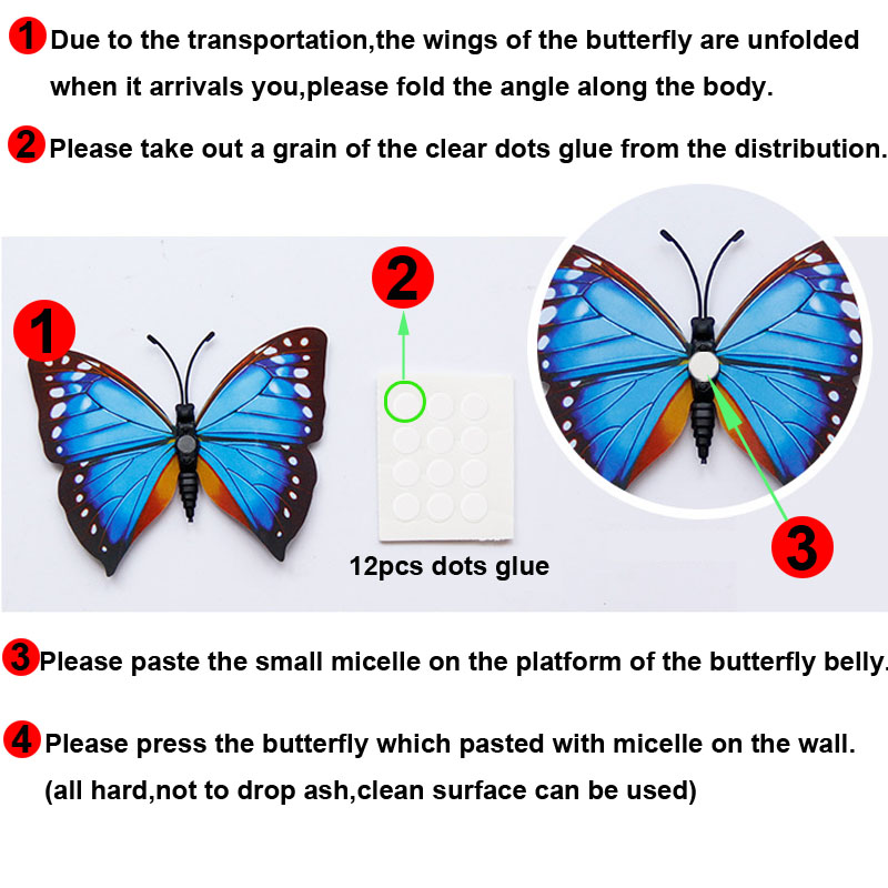 The butterfly come with magnet,and we also provide sticky dot,which can help you stick the butterfly on the wall.
