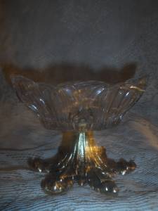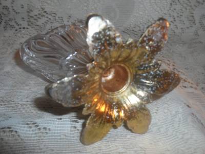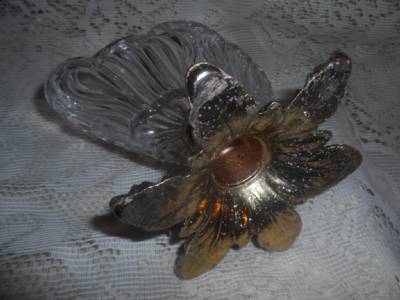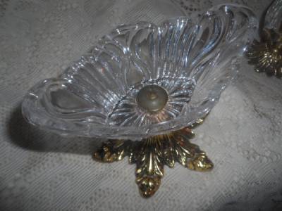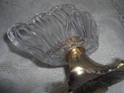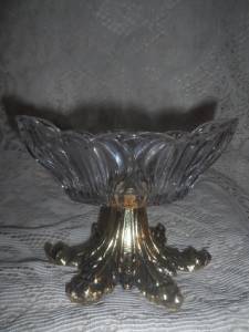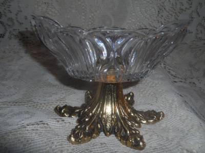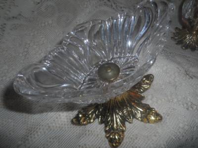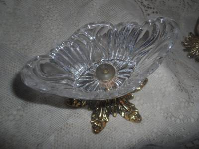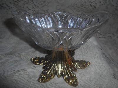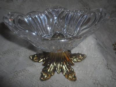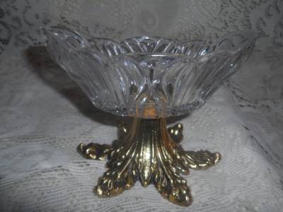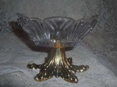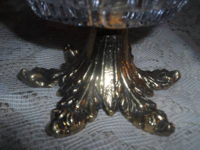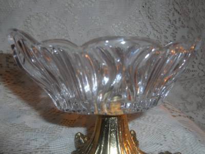 | neisesattic.com |  |  | VTG Crystal Pressed Glass Cast Metal Gilt Leaf Pedestal Vanity Compote Soap Dish