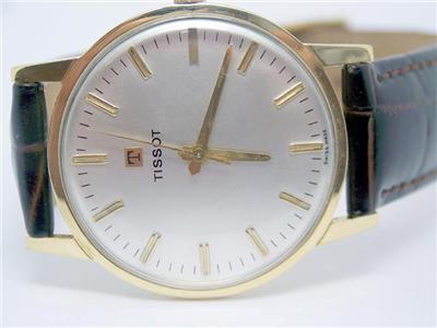 Solid 18k TISSOT Winding Watch c.1960s Cal 781* Excellent Condition* SERVICED . . Combine shipping is available for most of our products! Some exclusions apply (ask for a product if it does qualify for a combine shipping). .We do not ship to following countries: Afghanistan, Angola, Bolivia, Burma, Congo, Cuba, Iran, Iraq, Ivory Coast (Cote d'Ivoire), Liberia, Nigeria, North Korea, Paraguay, Sierra Leone, Somalia, Sudan, Syria, Venezuela. To Countries: Israel, Italy, Brazil, Mexico, Russian and other Commonwealth of Independent States countries (includes Armenia, Azerbaijan, Belarus, Georgia, Kazakhstan, Kyrgyzstan, Moldova, Russia, Russian Federation, Tajikistan, Turkmenistan, Ukraine, and Uzbekistan we will ship only via FEDEX. No Exceptions! FedEx rates will vary upon a country. Please, ask for a quote before placing an order! . . . This Mens Tissot watch is Swiss made. . Great present for yourself or someone you love as well as for vintage collectors or enthusiasts! . . * Solid 18k yellow gold case * Case is in high polish finish * Case back with inner markings; CH Tissot & Fills, Swiss made, 18k, 0.750, R41, 4202918 * Gold color hour hands & markers * Off white color dial * Watch is in excellent condition * Swiss Tissot winding movement 17 jewels cal. 781 * 34.5 mm case not including crown & logs. Log to log distance is 42 mm. Thickness is 8 mm. * Movement is working fine (has been fully serviced; April 20141) * Crystal has no scratches * Original winding crown with Tissot logo * New brown color genuine leather band in Alligator print * SKU # PA548N. . Delivered in new Watch box (aftermarket). Certificate of an Authenticity/Appraisal is available with purchase of this watch upon request. Comes with one year store warranty! . . . . . . . . About US At Fashion Ace Inc, our customers are our most important asset, which is why we are able to respond to most inquiries within 24 hours or less. We are committed to offering our customers the best possible selection of quality merchandise while providing unmatched customer service. We are a prime Watch & Jewelry Repair Shop for All Brand Name Watches & fine designer jewelry located in the heart of the famous jewelry district of New York City. Warranty!