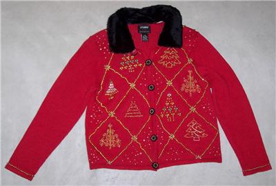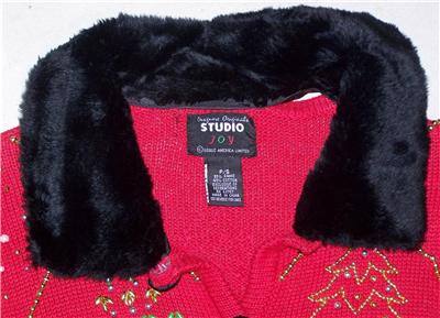 UGLY CHRISTMAS SWEATER DESIGNERS ORIGINALS STUDIO JOY WOMEN'S P/S FAUX FUR COLLAR