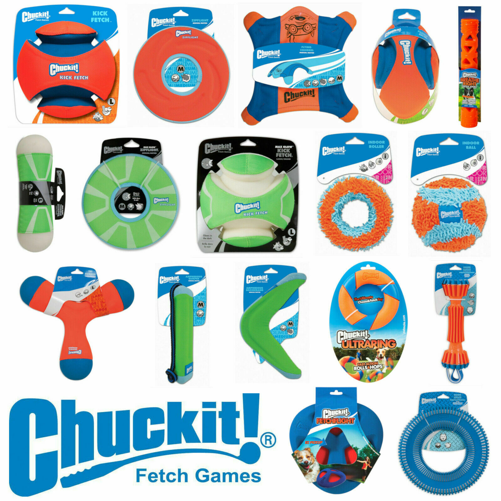 Chuckit Dog & Puppy Toys Fetch Throw Tug Bounce Frisbee Boomerang Tumbler Balls